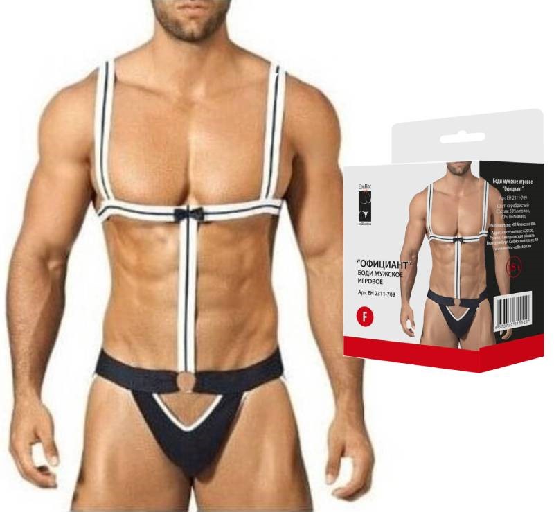 Игривый боди Официанта создан для тех, кому нравятся эксперименты. Боди выполнено из плотных стрейч лент.